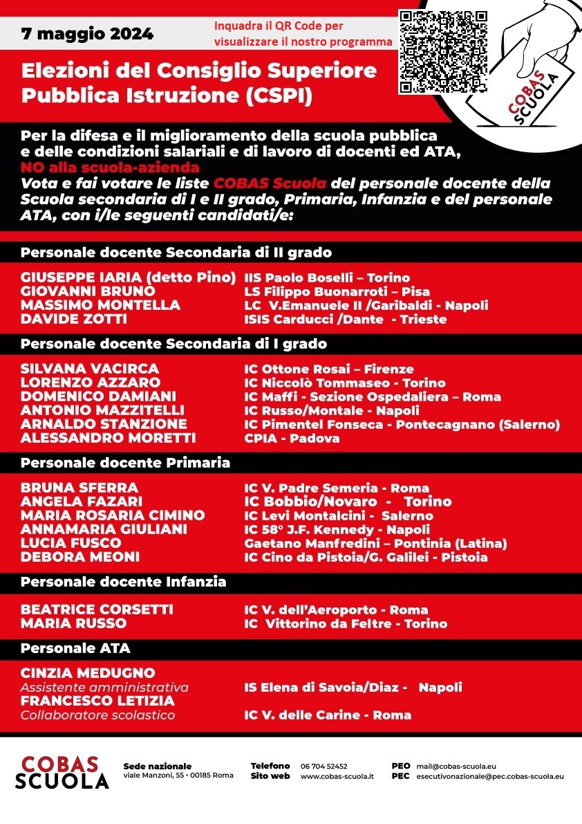 Candidati Elezioni CSPI – Cobas Scuola